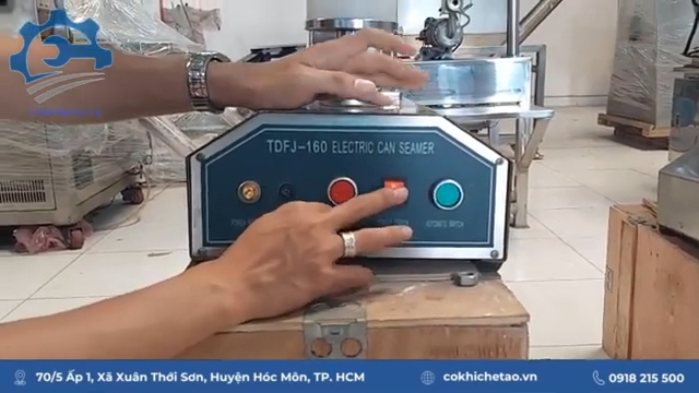 Ngoài ra máy còn có chế độ tự động, khi chọn chế độ tự động, mỗi lần đạp bàn đạp thì máy sẽ chạy hết một hành trình viền mí lon, giúp quá trình đóng nắp lon nhanh và đồng đều hơn.