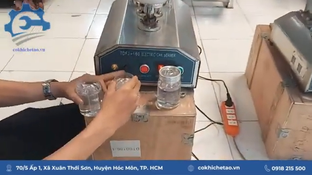 Ví dụ khi sử dụng lon nước đóng chai hoặc lon nước lọc, người vận hành chỉ cần đặt lon vào máy và đạp bàn đạp, ngay lập tức máy sẽ viền mí nắp lon chắc chắn và hoàn thiện sản phẩm đóng gói.