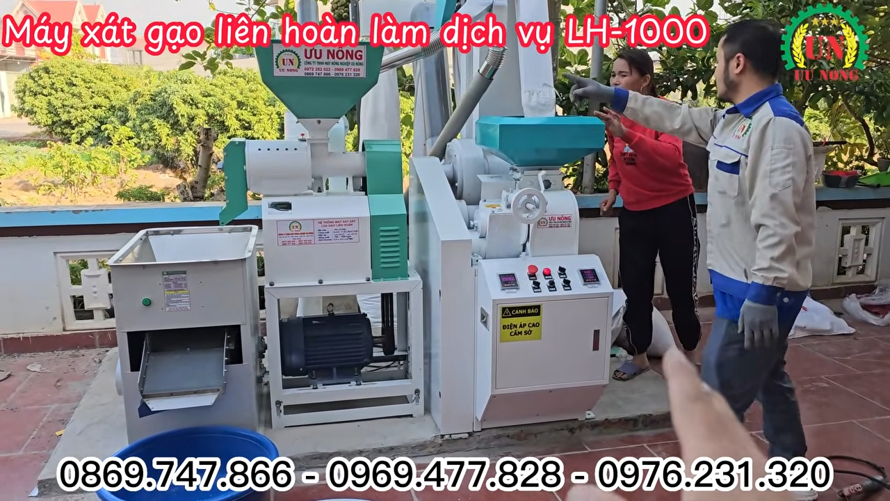 Hiện tại máy được lắp đặt tạm thời tại Lục Nam, Bắc Giang để kịp phục vụ vụ xay xát cho bác khách. Sau này khi bác hoàn thiện nhà xưởng thì hệ thống ống dẫn trấu sẽ được dẫn thẳng vào nhà chứa trấu riêng. Bên này là gầu tải dùng để tải thóc lên, sau đó thóc được đưa qua các bộ phận bóc vỏ, xát trắng và sàng lọc tạp chất trước khi ra gạo thành phẩm. Máy xay xát gạo H1000 có năng suất khoảng từ 700 kg đến 1 tấn mỗi giờ, rất phù hợp cho các hộ làm dịch vụ xay xát hoặc các cơ sở xay xát gạo để bán gạo thương phẩm. Nếu bà con nào đang có nhu cầu lắp đặt dòng máy xay xát gạo liên hoàn như thế này thì có thể tham khảo và liên hệ để được tư vấn thêm.