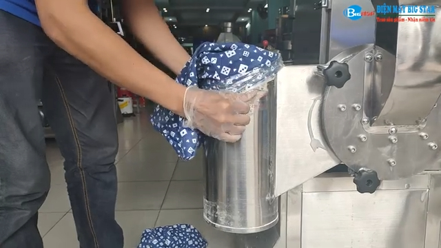 Điện Máy Binstar giới thiệu sản phẩm máy xay bột khô công nghiệp được gia công và lắp ráp trực tiếp tại Việt Nam. Máy được chế tạo hoàn toàn bằng inox 304 cao cấp, đảm bảo độ bền, chống hoen gỉ và an toàn vệ sinh thực phẩm trong quá trình sử dụng. Thiết bị chuyên dùng để nghiền các nguyên liệu khô như thuốc bắc, trà xanh, hải sản khô, tôm khô hoặc các loại ngũ cốc, cho ra bột mịn, đồng đều, phù hợp cho các cơ sở sản xuất thực phẩm và gia vị.