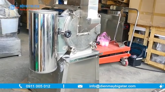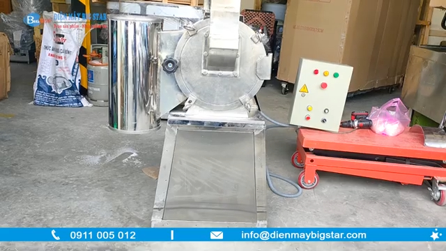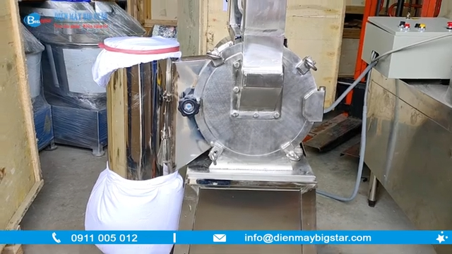 Toàn bộ thân máy được làm bằng inox chắc chắn, có độ bền cao, đảm bảo an toàn vệ sinh thực phẩm. Chất liệu inox không chỉ giúp máy bền bỉ mà còn dễ vệ sinh sau khi nghiền, phù hợp với môi trường sản xuất thực phẩm, bột ngũ cốc hay dược liệu. Máy được trang bị hộp điều khiển hiện đại với biến tần điều chỉnh tốc độ động cơ, nút bật/tắt và nút dừng khẩn cấp, giúp người dùng vận hành dễ dàng, an toàn và ổn định.