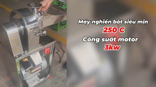Máy xay bột khô siêu mịn công nghiệp được giới thiệu là dòng máy chuyên dùng để xay nghiền các loại nguyên liệu khô như gạo và nhiều loại nguyên liệu khác thành bột siêu mịn, máy có cấu tạo gồm hai bộ phận chính là motor công suất lớn và bộ phận nghiền bột, trong đó motor sử dụng công suất khoảng 2200W giúp tạo lực nghiền mạnh mẽ để xay gạo và các loại hạt thành bột mịn nhanh chóng và hiệu quả.