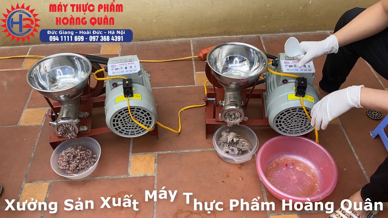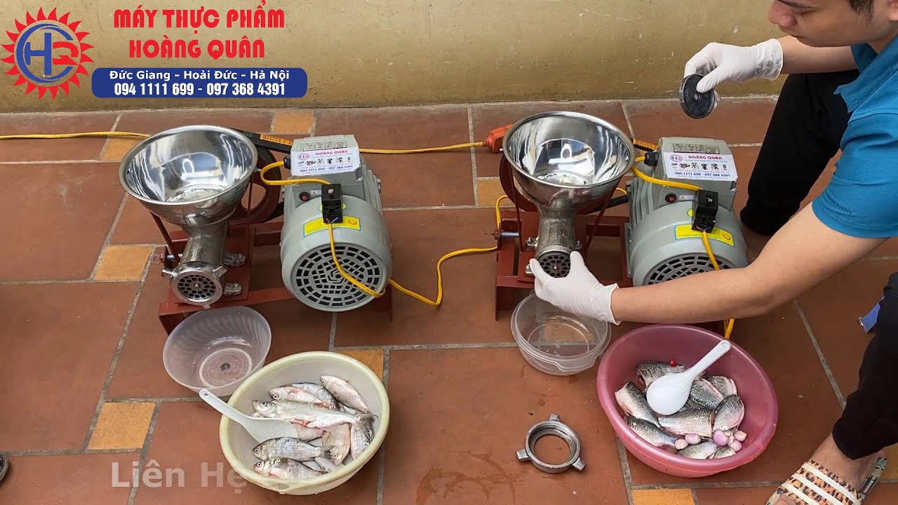 Sẵn sàng xuất máy, xin chào tất cả các khách hàng. 2 chiếc cối đùn thịt đùn xương và hôm nay sẽ thực hiện xay cá để mọi người có thể quan sát rõ cách sử dụng thực tế. Mọi người có thể nhìn thấy ở đây là cối 12, một chiếc 1 giê cối rời và một chiếc 2 giê cối rời, mỗi loại đều có những đặc điểm khác nhau. Trong video hôm nay sẽ làm clip xay cá để làm chả cá, ngoài ra còn có một kiểu xay chuyên dùng cho chăn nuôi, ví dụ như xay cá cho vịt, ngan hoặc heo ăn. Như anh em đã biết, nếu trong trường hợp mình cần xay thật nhỏ để chế biến thực phẩm cho gia đình, thành phẩm phải nhuyễn và mịn, vì vậy mọi người sẽ cần mua thêm mặt sàng lỗ 2 ly, đây là loại lỗ rất nhỏ giúp cho thành phẩm sau khi xay đạt độ nhuyễn rất cao, nguyên liệu ra rất mịn, đảm bảo an toàn khi sử dụng làm thực phẩm. Trong video này mọi người cần chú ý rõ một bên là xay cho chăn nuôi và một bên là xay để mình ăn.