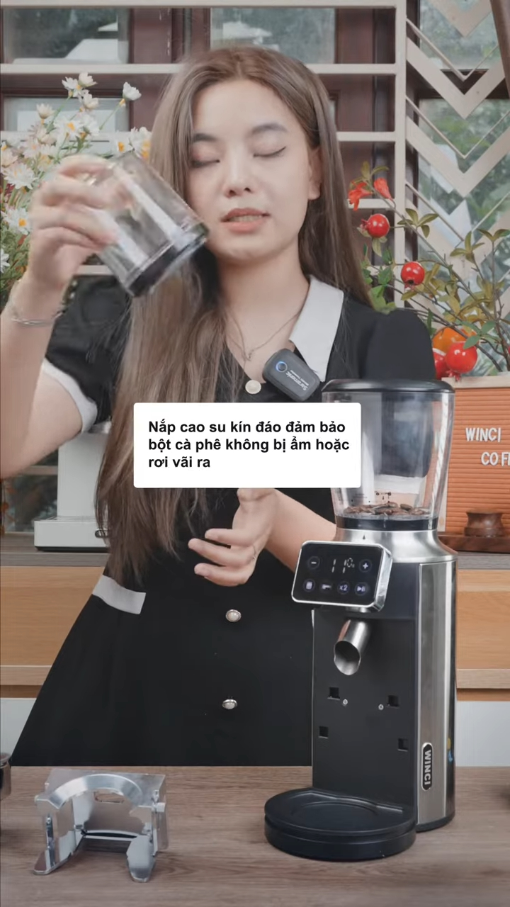 Tiếp theo người dùng cần đổ hạt cà phê vào hopper với lượng phù hợp cho nhu cầu xay, không nên đổ quá đầy để tránh gây áp lực lên buồng xay; sau khi cho hạt cà phê vào, hãy đóng nắp hopper lại để hạn chế bụi và giúp hạt cà phê ổn định trong quá trình xay.