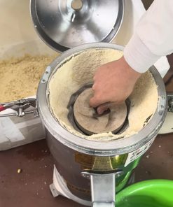 Khi sử dụng máy, đầu tiên bạn cần lắp các bộ phận như hướng dẫn, đảm bảo rằng cửa ra và vòi nước được lắp đúng cách. Vòi nước sẽ tự động chảy từ trên xuống giữa, giúp cung cấp nước cho quá trình xay. Lưu ý rằng bạn cần điều chỉnh hai viên đá sao cho chúng không chạm vào nhau, chỉ cần gần chạm là đủ để xay mịn.