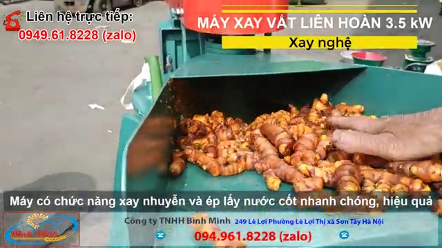Máy xay ép liên hoàn xay nghệ và sắn dây làm tinh bột nghệ, bột sắn từ lâu đã trở thành thiết bị được nhiều hộ gia đình và cơ sở sản xuất quan tâm, bởi tinh bột nghệ và bột sắn là những sản phẩm được người tiêu dùng rất ưa chuộng trên thị trường. Tuy nhiên nếu sản xuất theo phương pháp thủ công thì quá trình này thường tốn rất nhiều thời gian, công sức và chi phí nhân công. Chính vì vậy việc sử dụng máy móc hỗ trợ là giải pháp hiệu quả giúp nâng cao năng suất và giảm bớt công việc nặng nhọc trong quá trình chế biến.