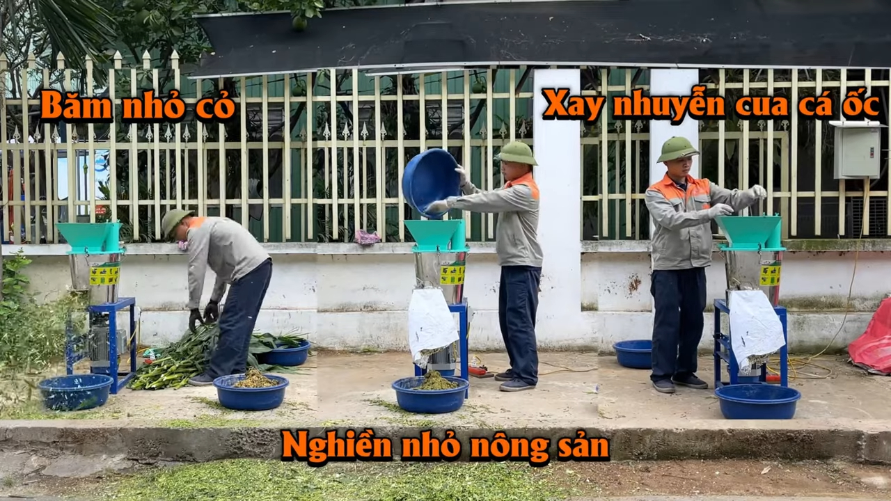 Ngoài việc phục vụ cho chế biến thực phẩm, máy còn được sử dụng rộng rãi trong chăn nuôi. Bà con có thể dùng máy để băm nhỏ các loại cỏ, thân cây mềm, rau bèo thành những mảnh nhỏ giúp vật nuôi dễ ăn và dễ tiêu hóa hơn. Bên cạnh đó, máy cũng có thể nghiền các loại hạt nông sản thành dạng bột mịn hoặc xay nhuyễn cá, đầu cá, ốc thành hỗn hợp thức ăn giàu dinh dưỡng cho vật nuôi.