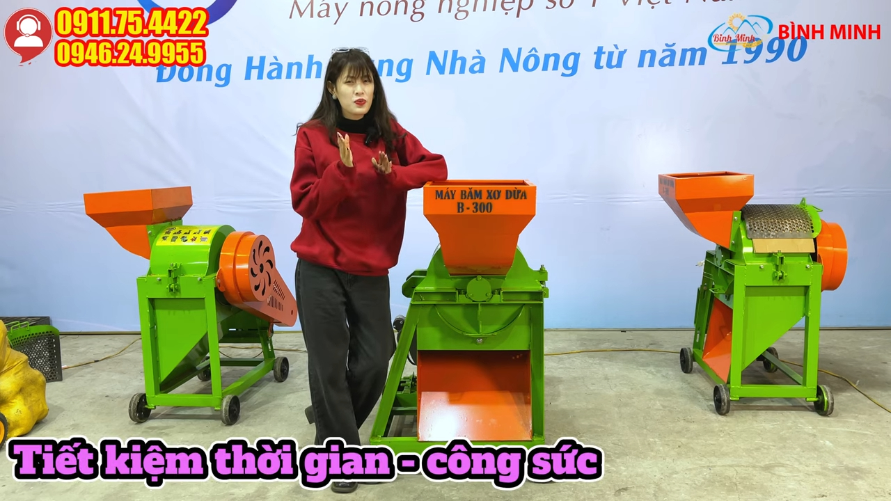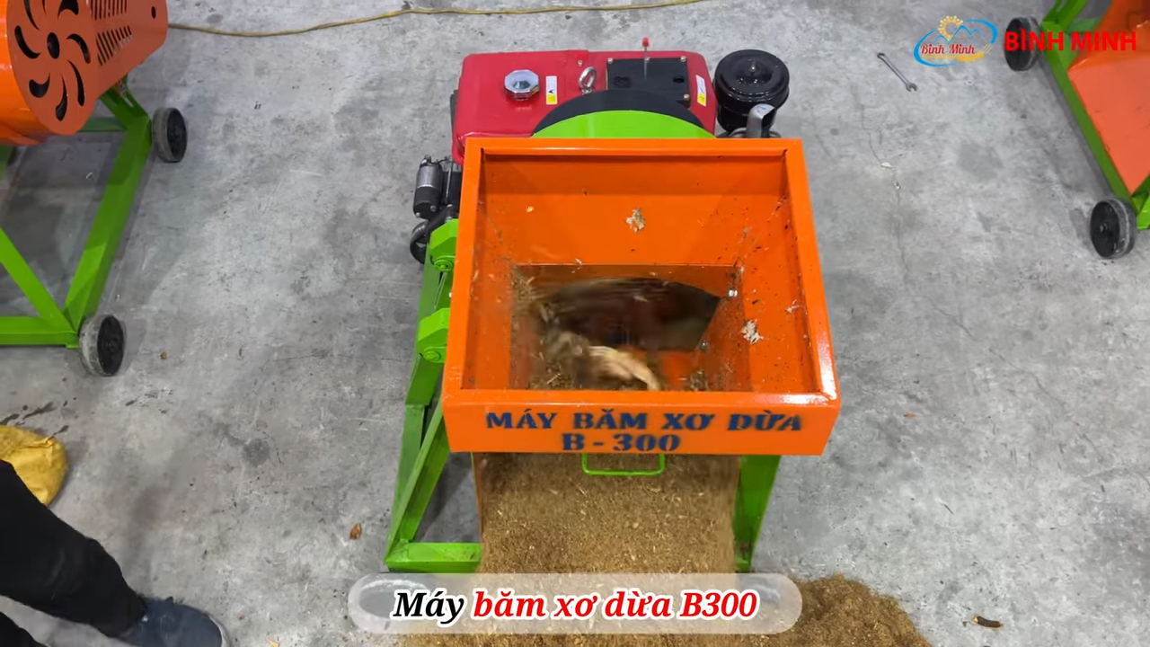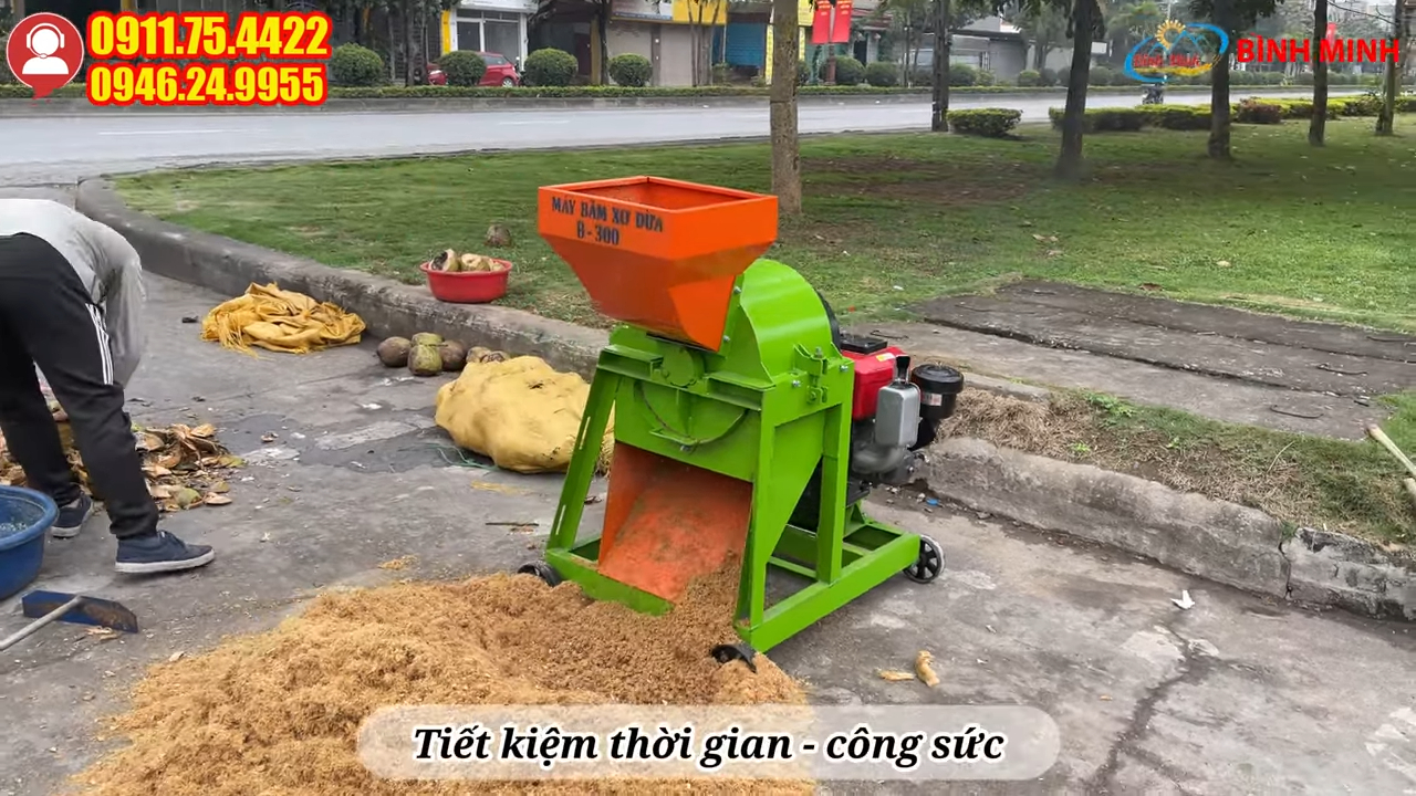 Máy xay xơ dừa B300 đầu nổ 10HP giúp tận dụng vỏ dừa để sản xuất mùn dừa năng suất cao, tiết kiệm thời gian và công sức so với phương pháp thủ công. Trong quá trình sử dụng, người dùng nên kiểm tra dao băm và tra dầu mỡ định kỳ cho các bộ phận chuyển động để máy vận hành ổn định và kéo dài tuổi thọ thiết bị.