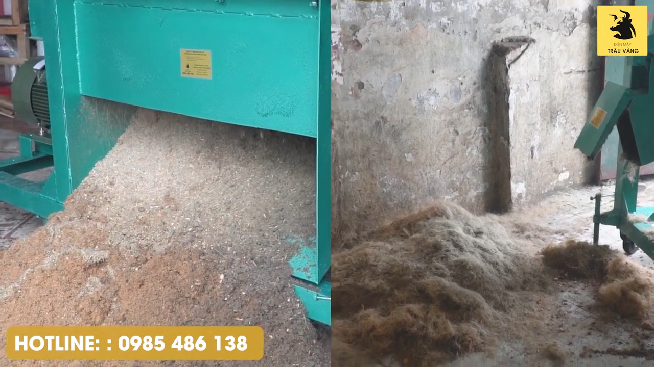 Trong quá trình vận hành bà con có thể thấy nguyên liệu chuẩn bị gồm vỏ dừa tươi, vỏ dừa nửa quả và vỏ dừa nguyên quả rất lớn, tuy nhiên máy vẫn xử lý rất nhanh và sau khi nghiền sẽ cho ra hai dạng thành phẩm ở hai cửa xả khác nhau.