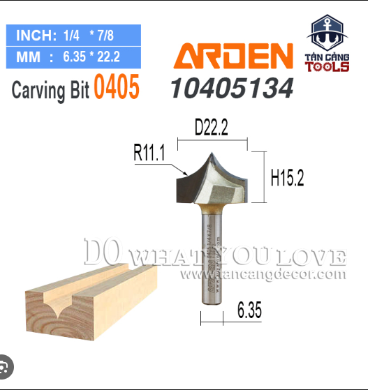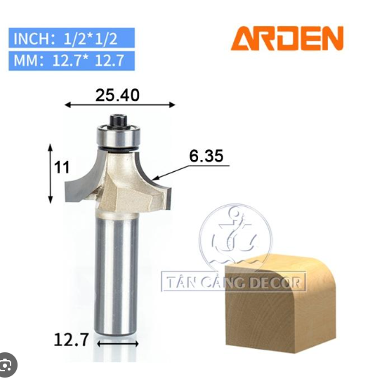 Dưới đây là thông số kỹ thuật của Mũi Router Đánh Chỉ Chữ S Arden R7.96 x R11.1 mm Cốt 12.7 mm: