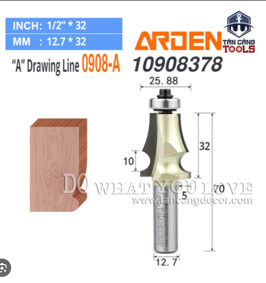 Mũi Router Đánh Chỉ Chữ S Arden R 3.17 x R 6.35 mm × 12.7 mm là một công cụ chuyên nghiệp được dùng để chế tạo ra các đường cong có hình thù phức tạp trên bề mặt gỗ. Mũi router có tiết diện hình dạng chữ S với bán kính 3.17 mm x 6.35 mm, cho phép tạo ra các đường cong mềm mại và độ chính xác. Mũi router được chế tạo từ loại hợp kim nhôm bền cao, có tính thẩm mỹ cùng giá trị sử dụng dài lâu.