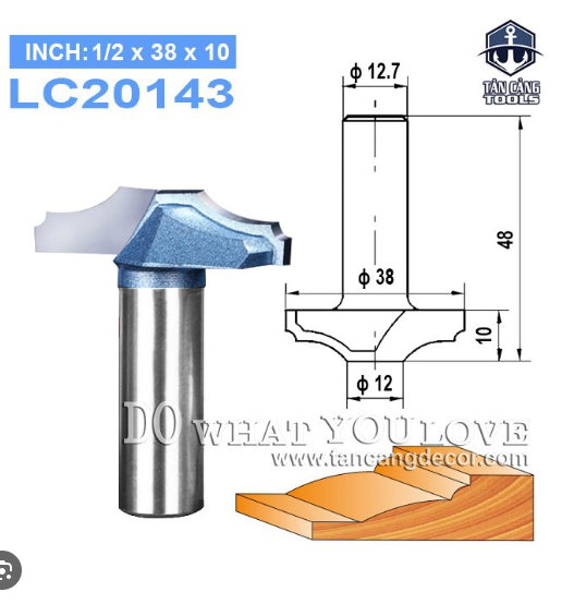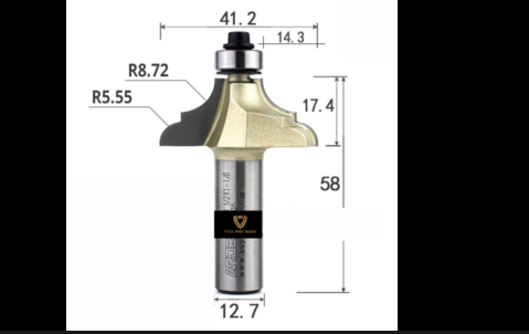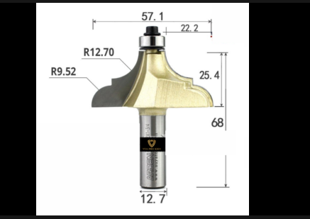 - Mũi router có thiết kế hình chữ S với bán kính 6.35 mm và 9.52 mm, giúp tạo ra các đường cong mượt mà và chính xác.
