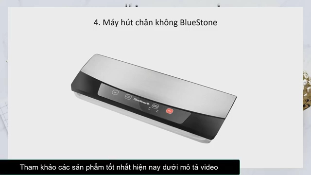 BlueStone là một thương hiệu máy hút chân không được nhiều người tiêu dùng lựa chọn, được đánh giá cao trong lĩnh vực thiết bị gia dụng. Máy hút chân không BlueStone có thiết kế hiện đại, chất lượng ổn định và màu sắc sang trọng như đen, xám hoặc bạc, phù hợp với nhiều không gian bếp khác nhau. Với thiết kế nhỏ gọn, người dùng dễ dàng đặt máy trên bàn bếp hoặc kệ bếp mà không chiếm nhiều diện tích. Công suất lớn giúp quá trình hút chân không và hàn miệng túi diễn ra nhanh và hiệu quả hơn. Một trong những model được nhiều người đánh giá tốt là BlueStone VCB-2735, với mức giá khoảng từ 2 triệu đồng.