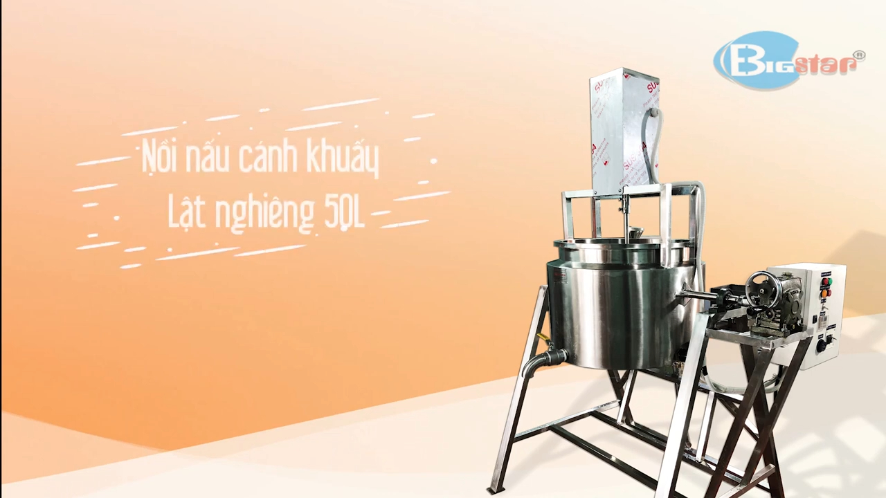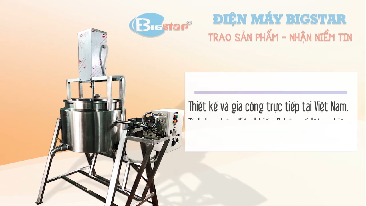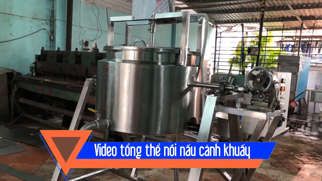 Trong nồi có trục khuấy được vận hành bởi biến tần thông qua tủ điện điều khiển và hệ thống cánh khuấy được thiết kế liên kết với nhau giúp quá trình nấu đảo đều nguyên liệu, nhờ đó nguyên liệu không bị bám dính vào đáy nồi và đảm bảo quá trình nấu diễn ra đồng đều.