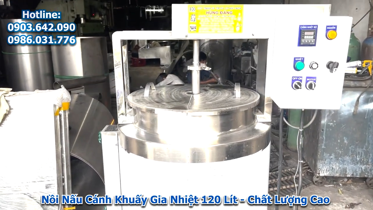 trong này giới thiệu đến quý khách sản phẩm nồi nấu cánh khuấy gia nhiệt 120 lít, sự kết hợp hoàn hảo giữa chất lượng và hiệu suất, giải pháp thiết bị nấu công nghiệp hiện đại giúp các cơ sở chế biến thực phẩm nâng cao năng suất sản xuất trong khi vẫn đảm bảo vệ sinh an toàn thực phẩm và khả năng vận hành hiệu quả ổn định lâu dài.
