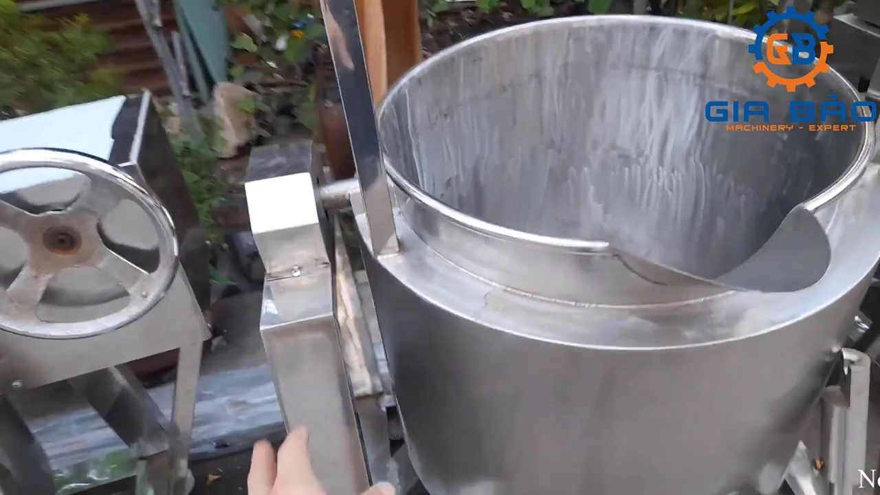 Thiết kế lật nghiêng và chất liệu inox của nồi nấu cánh khuấy