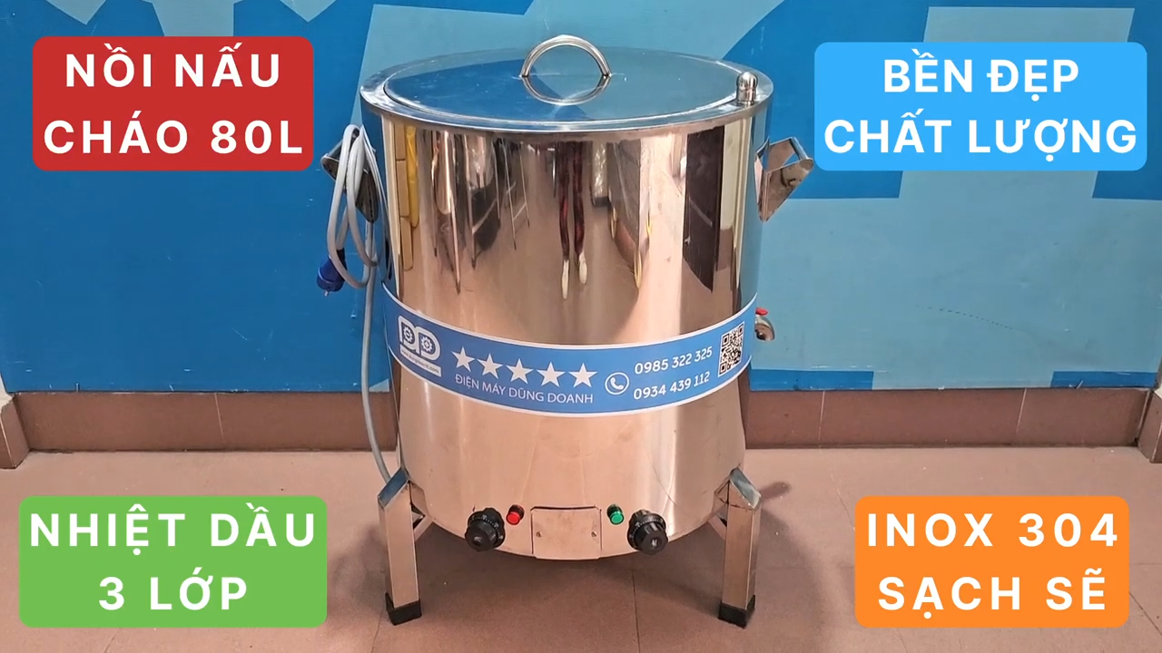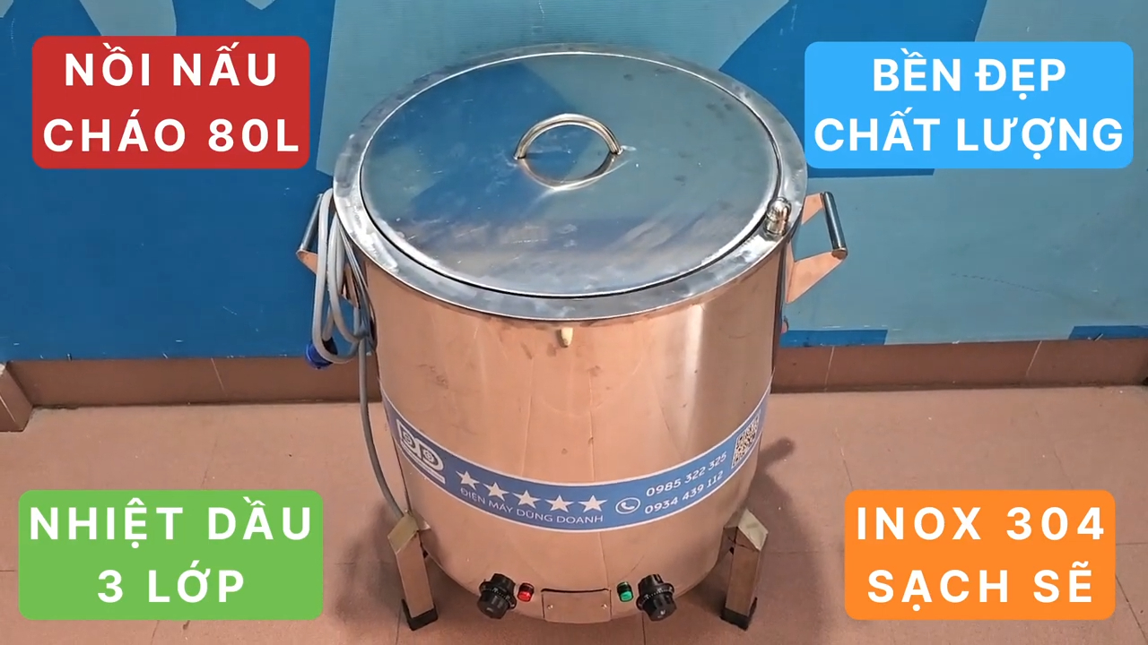 Trên đây là phần giới thiệu chi tiết về nồi nấu cháo công nghiệp 80 lít inox 304 tốt nhất, phù hợp cho nhu cầu sử dụng trong bếp kinh doanh và quán ăn chuyên nghiệp.