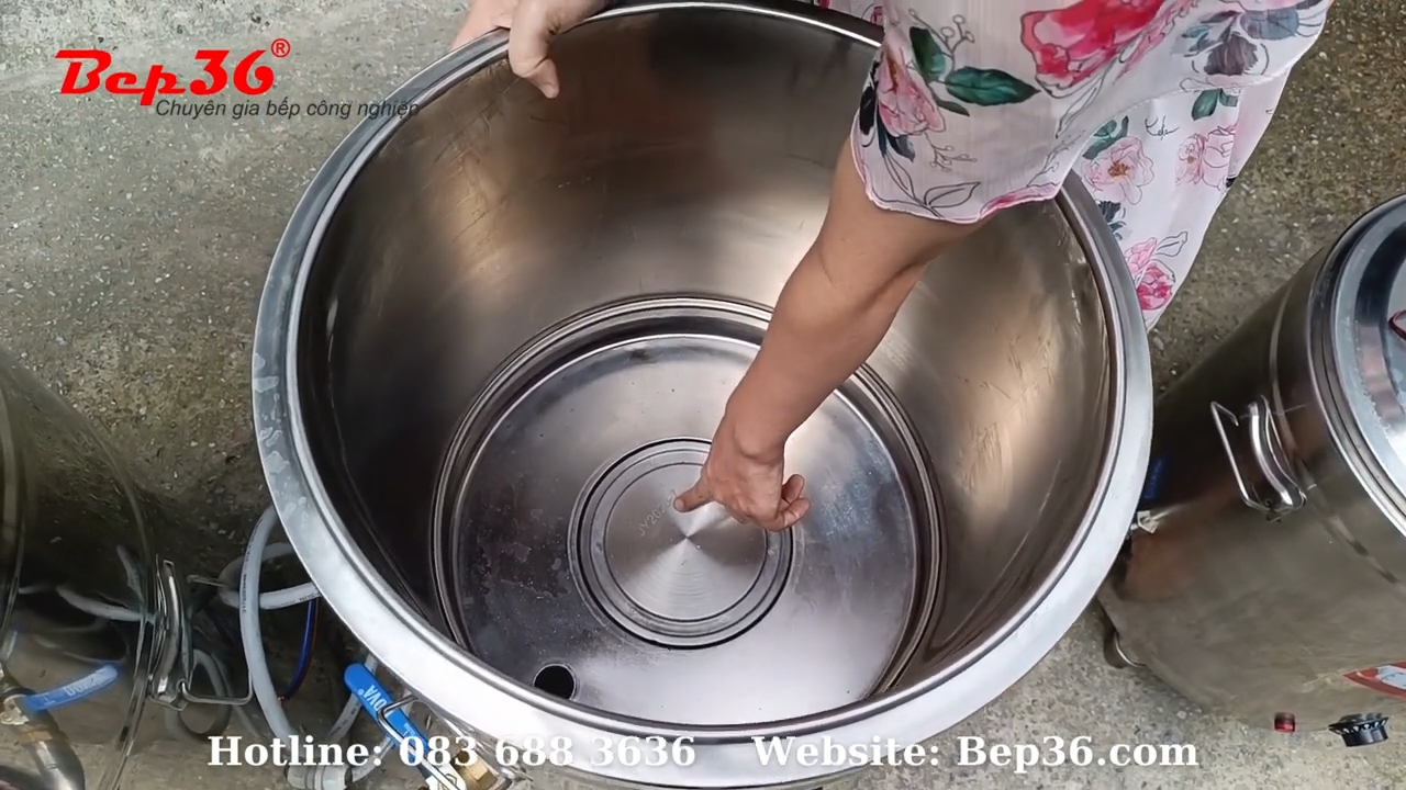 Nồi nấu phở dung tích 50 lít còn được trang bị nắp nồi chắc chắn giúp giữ nhiệt tốt, tay cầm tiện lợi cho việc mở nắp khi sử dụng và van xả đáy giúp dễ dàng xả nước hoặc vệ sinh nồi sau khi nấu. Thiết kế này giúp việc bảo dưỡng và làm sạch thiết bị trở nên nhanh chóng và thuận tiện hơn.