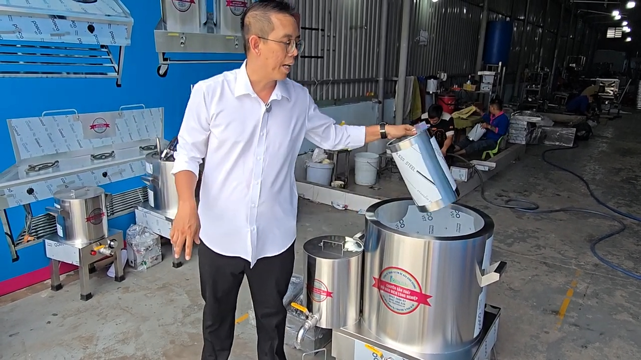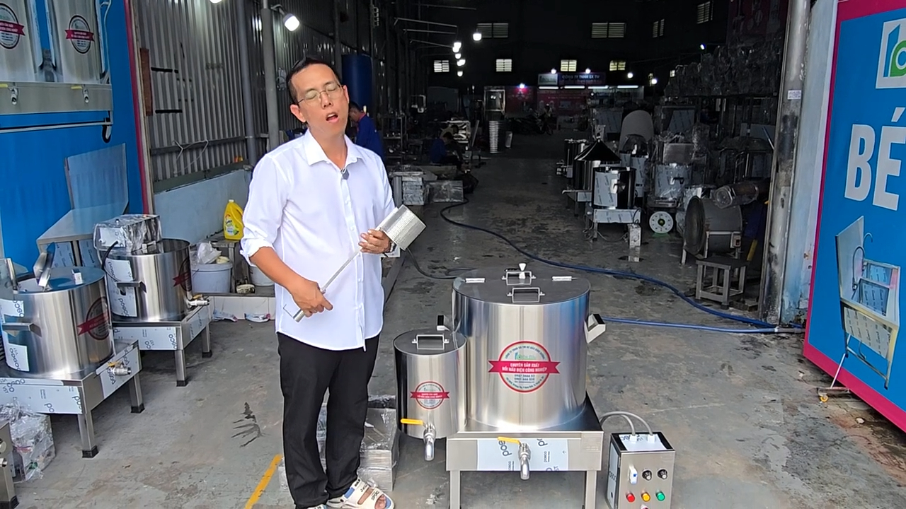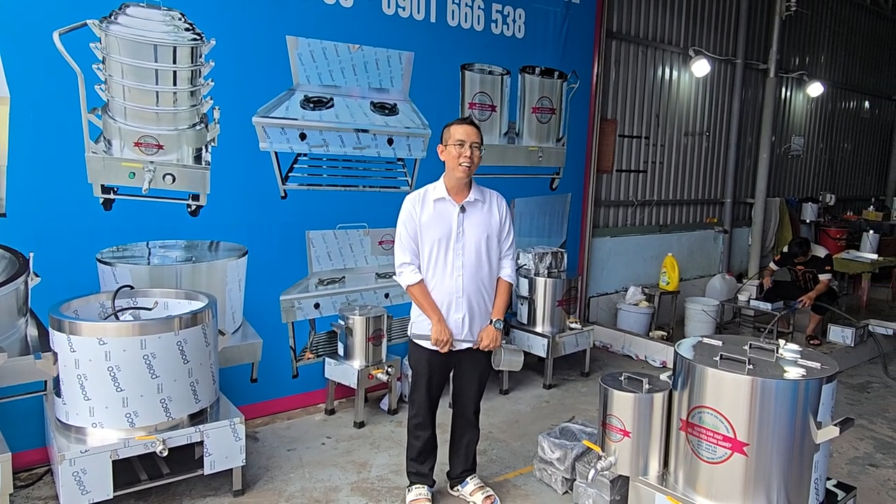 Nồi nấu phở bằng điện 80 lít kiểu mẹ bồng con, khách hàng từ Huyện Bù Đăng, Tỉnh Bình Phước dù đường đi khá xa xuống Bình Dương và điện thoại nhiều lúc không liên lạc được nhưng vẫn đi từ 7 giờ sáng và tới khoảng 2 giờ chiều để đến tận nơi xem sản phẩm, trước đó khách hàng đã xem nhiều review nồi nấu phở trên YouTube và cảm thấy thích mẫu nồi, trước đây khách hàng từng đặt một đơn vị khác với giá chỉ vài triệu đồng nhưng khi nhận hàng thì không lấy vì sản phẩm thực tế không giống hình ảnh quảng cáo nên quyết định đi thẳng để đặt hàng trực tiếp và khi đến xem thực tế thì hoàn toàn hài lòng vì sản phẩm đẹp đúng như mong muốn.