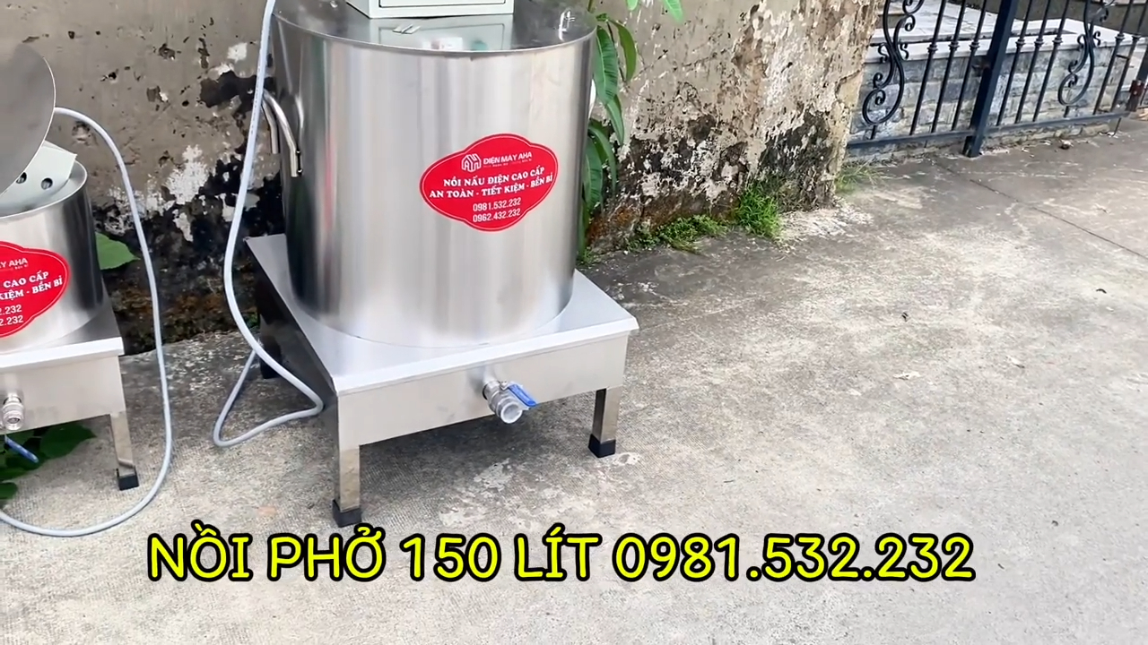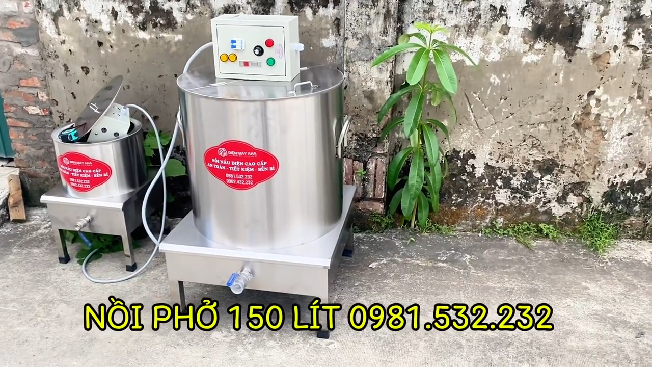 Nồi nấu phở bằng điện dung tích 150 lít là dòng nồi có dung tích rất lớn, phù hợp cho các quán bún phở, quán ăn, nhà hàng cần nấu nước dùng số lượng lớn mỗi ngày.