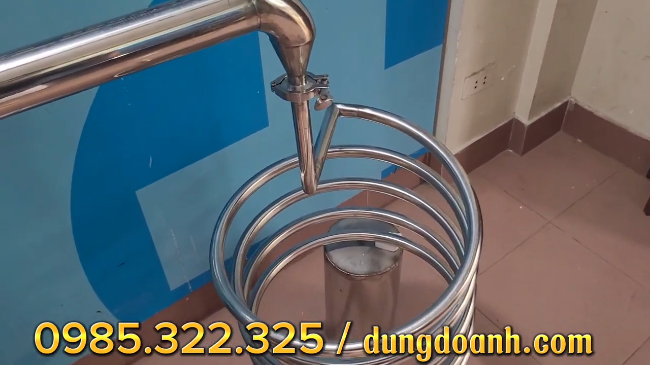 Trên nắp nồi là ống dẫn hơi sang bộ phận làm lạnh, thay vì dùng cả thùng làm lạnh lớn thì khách hàng yêu cầu thiết kế dạng ruột xoắn inox để khi mang ra nước ngoài có thể đặt ruột xoắn này vào bất kỳ bồn nước nào như bồn nhựa, bồn inox hoặc bể nước tự xây; hệ thống ruột xoắn inox rất sạch sẽ, không độc hại khi chưng cất rượu và cũng dễ vệ sinh sau khi sử dụng, đầu ra cuối cùng của ống xoắn là nơi rượu chảy ra để người dùng hứng vào chai hoặc can chứa.