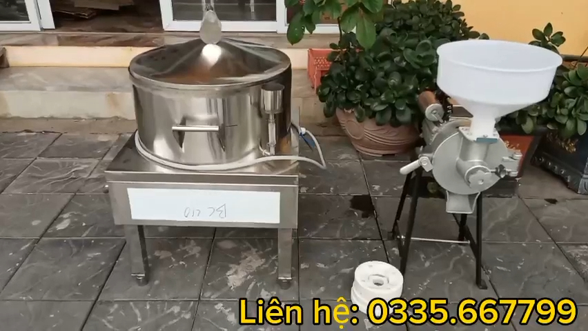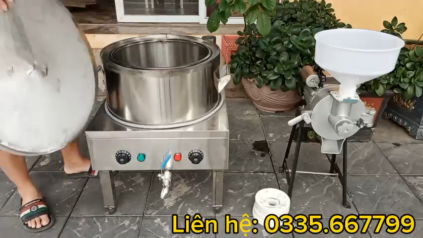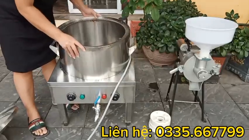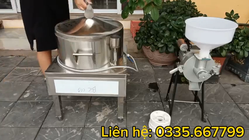Ở phía bên phải màn hình là máy nghiền bột ướt, thiết bị này dùng để xay gạo thành bột nước phục vụ cho việc tráng bánh cuốn, bánh phở hoặc bánh ướt.