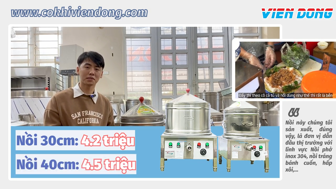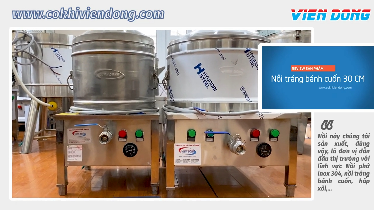 Các mẫu nồi tráng bánh cuốn bằng điện có kích thước phổ biến 35 và 40 được kiểm tra và chạy thử trước khi bàn giao cho khách hàng. Toàn bộ sản phẩm được gia công bằng inox chất lượng cao, giúp nồi luôn sáng đẹp, bền bỉ và đảm bảo vệ sinh an toàn thực phẩm trong suốt quá trình sử dụng.