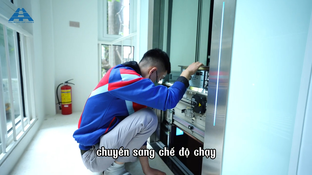 Cho thang máy chạy lần lượt qua các tầng để kiểm tra.