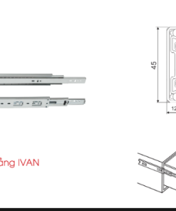 Thông số kỹ thuật của ray bi trượt gắn hộc tủ bản 45mm màu trắng, có giảm chấn: