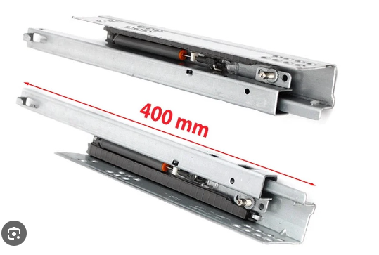 - Ray trượt đơn giảm chấn: Ray trượt đơn giảm chấn là loại ray trượt đơn có thêm bộ giảm chấn, giúp ngăn kéo đóng lại một cách êm ái và không gây tiếng ồn.