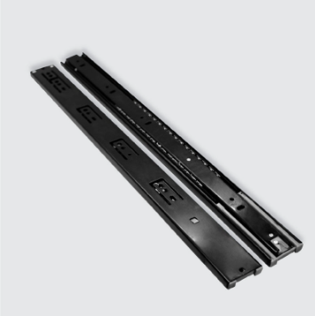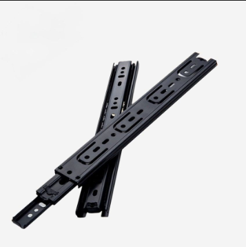 Ray trượt đơn, màu đen là một loại ray trượt được sử dụng để lắp đặt ngăn kéo trong tủ. Ray trượt này có một thanh trượt được gắn vào ngăn kéo và một thanh trượt được gắn vào tủ. Khi bạn kéo ngăn kéo ra, thanh trượt trên ngăn kéo sẽ trượt dọc theo thanh trượt trên tủ, giúp ngăn kéo kéo ra và đẩy vào một cách dễ dàng.