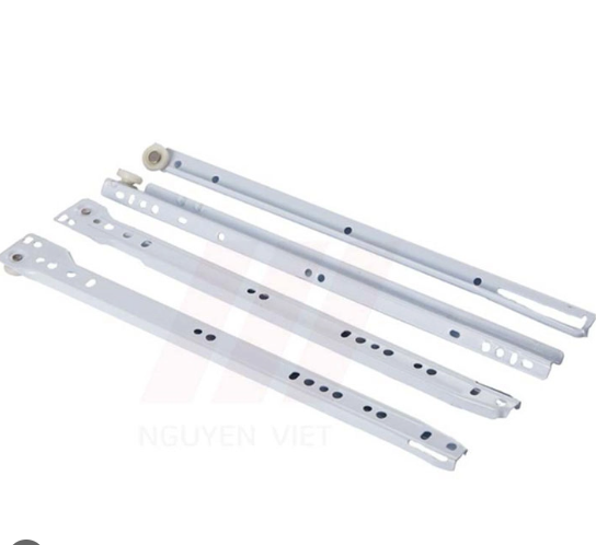 - Chất liệu: Ray trượt đơn màu trắng thường được làm từ thép cán nguội hoặc nhôm. Ray trượt làm từ thép cán nguội có giá thành rẻ hơn, ray trượt làm từ nhôm có trọng lượng nhẹ hơn.