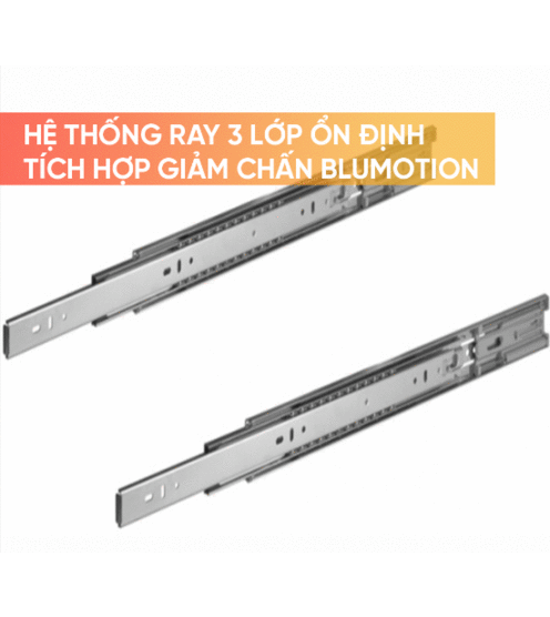 Ray ngăn kéo còn có 3 lớp trượt, giúp ngăn kéo tủ có thể trượt một cách êm ái và nhẹ nhàng, ngoài ra ray ngăn kéo có khả năng chịu trọng tải cao nhờ việc sử dụng ray trượt giúp ngăn kéo tủ khép hờ trở nên êm ái và nhẹ nhàng hơn bao giờ hết.