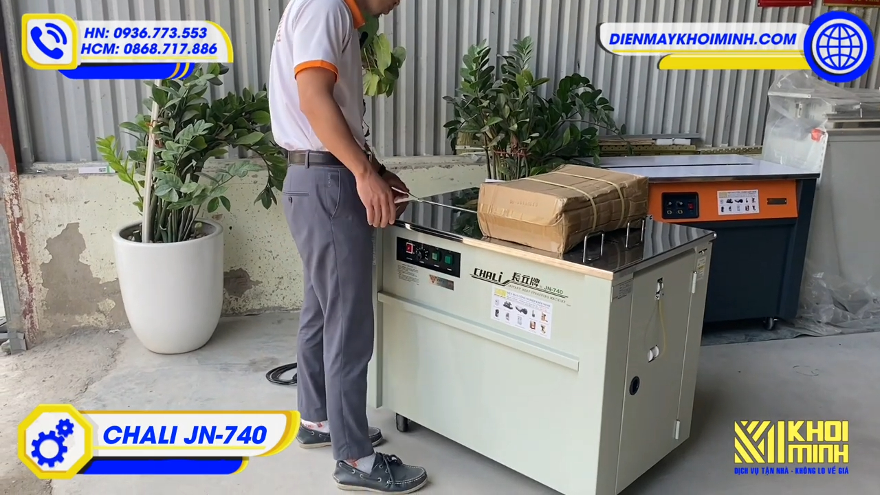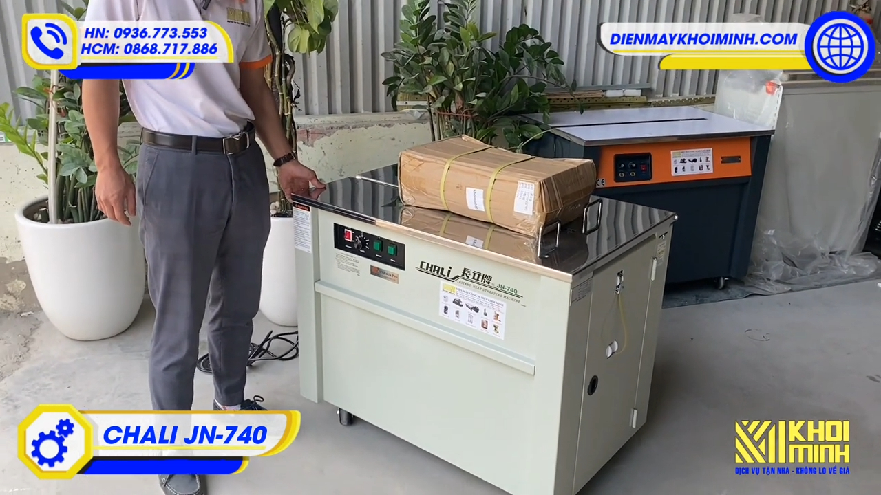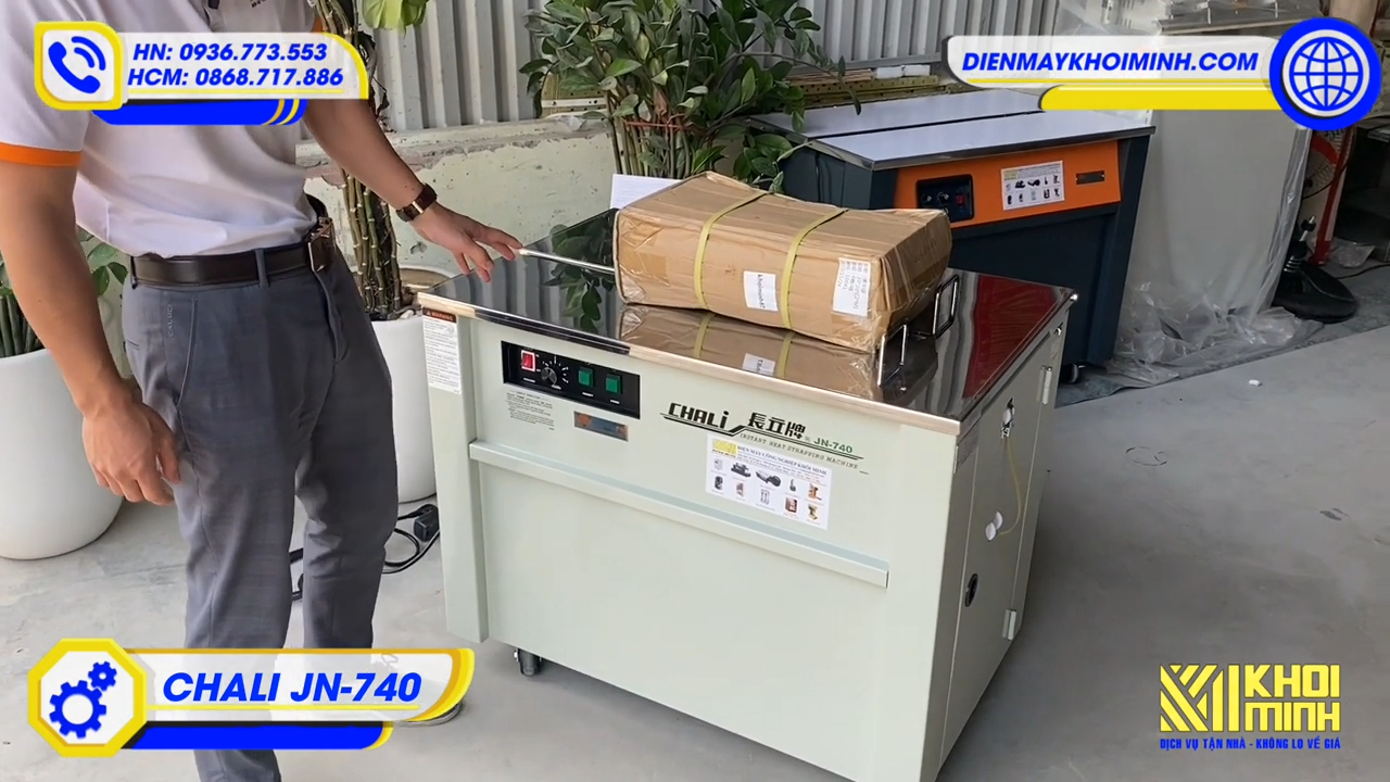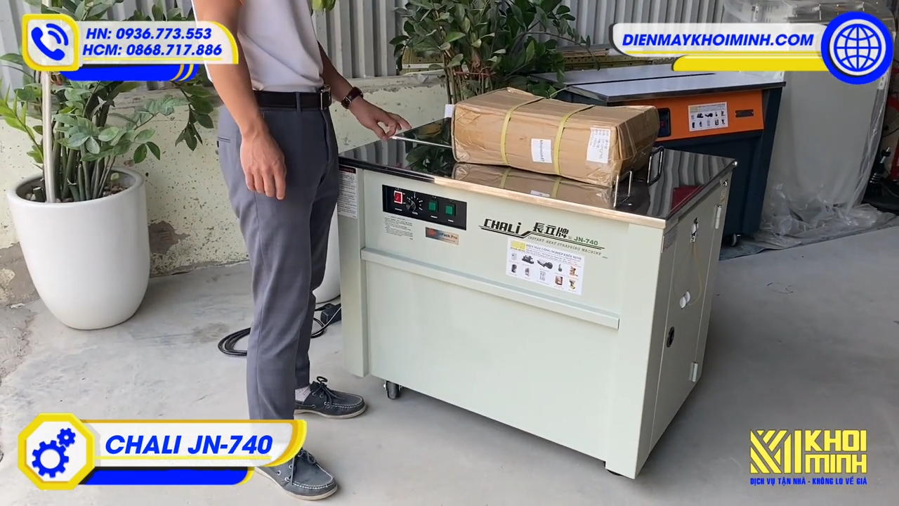 Trước mặt anh chị hiện đang là máy đóng đai nhựa hàn nhiệt Zener 740 đến từ thương hiệu nổi tiếng Chali (Taiwan). Đây là dòng máy được Điện máy Khôi Minh nhập khẩu nguyên chiếc từ Đài Loan và phân phối tại thị trường Việt Nam. Đối với phiên bản Zener 740 này, hầu hết khách hàng sau khi sử dụng đều đánh giá rất cao về chất lượng đóng đai, độ bền cũng như độ ổn định khi vận hành. Gần như rất hiếm khi nhận được phản hồi tiêu cực về dòng máy này.