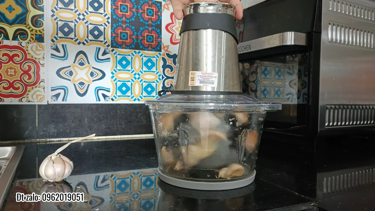 Cách sử dụng máy cũng rất đơn giản, trước tiên mở nắp cối, sau đó cho thực phẩm vào, ví dụ khi bóc tỏi thì tách tỏi thành từng tép rồi cho vào cối và sử dụng lưỡi dao cao su, đậy nắp lại và đặt đầu máy lên trên, sau đó nhấn nút chế độ 1 để máy vận hành, đối với các loại thực phẩm cần xay nhuyễn như thịt thì sử dụng lưỡi dao kim loại và chọn chế độ 2 để máy xay mạnh hơn, thao tác rất nhanh và dễ dàng.