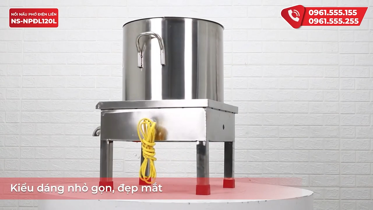 Nồi nấu phở điện liền 120L được thiết kế với dung tích lớn giúp người sử dụng có thể nấu một lượng nước dùng đáng kể trong mỗi lần vận hành, thiết bị này rất phù hợp cho các quán phở hoặc nhà hàng cần phục vụ nhiều khách trong ngày, nhờ dung tích lớn nên nồi có thể đáp ứng nhu cầu nấu nước dùng liên tục mà không cần phải nấu nhiều lần, từ đó giúp tiết kiệm thời gian và công sức trong quá trình kinh doanh.