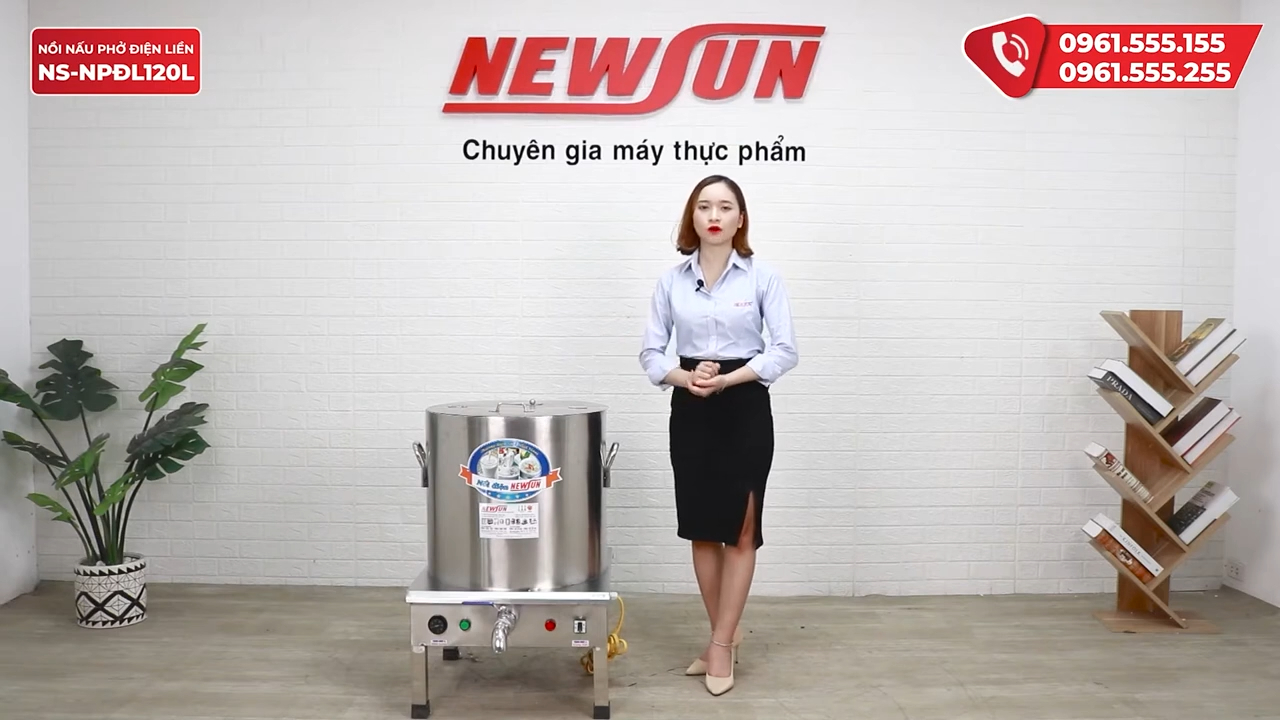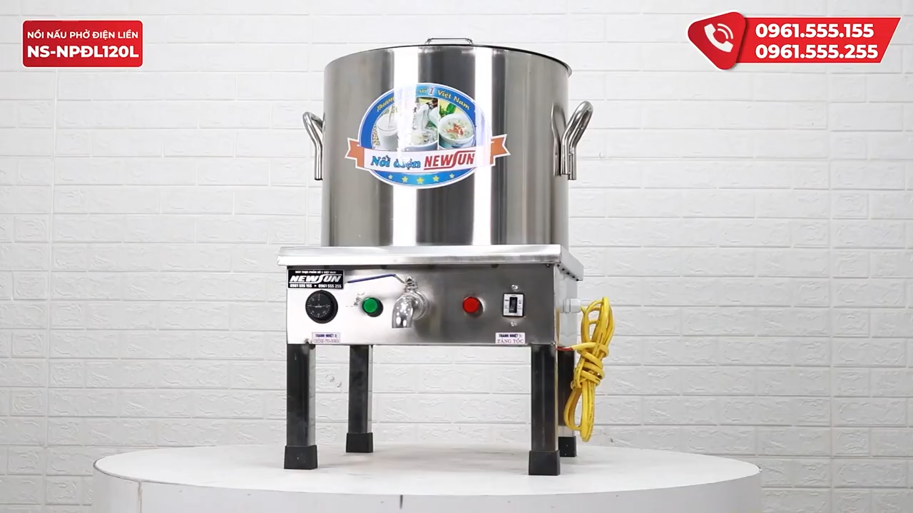 Nồi nấu phở điện liền 120L dung tích lớn giúp nấu nước dùng liên tục