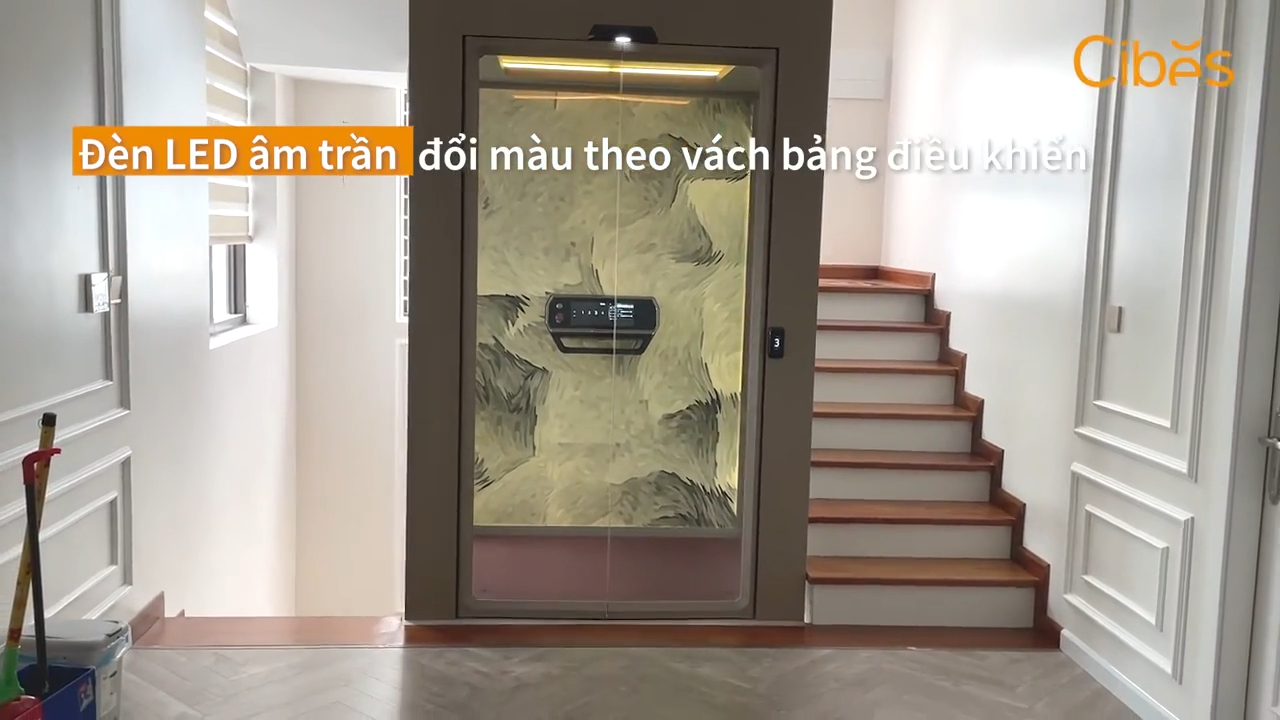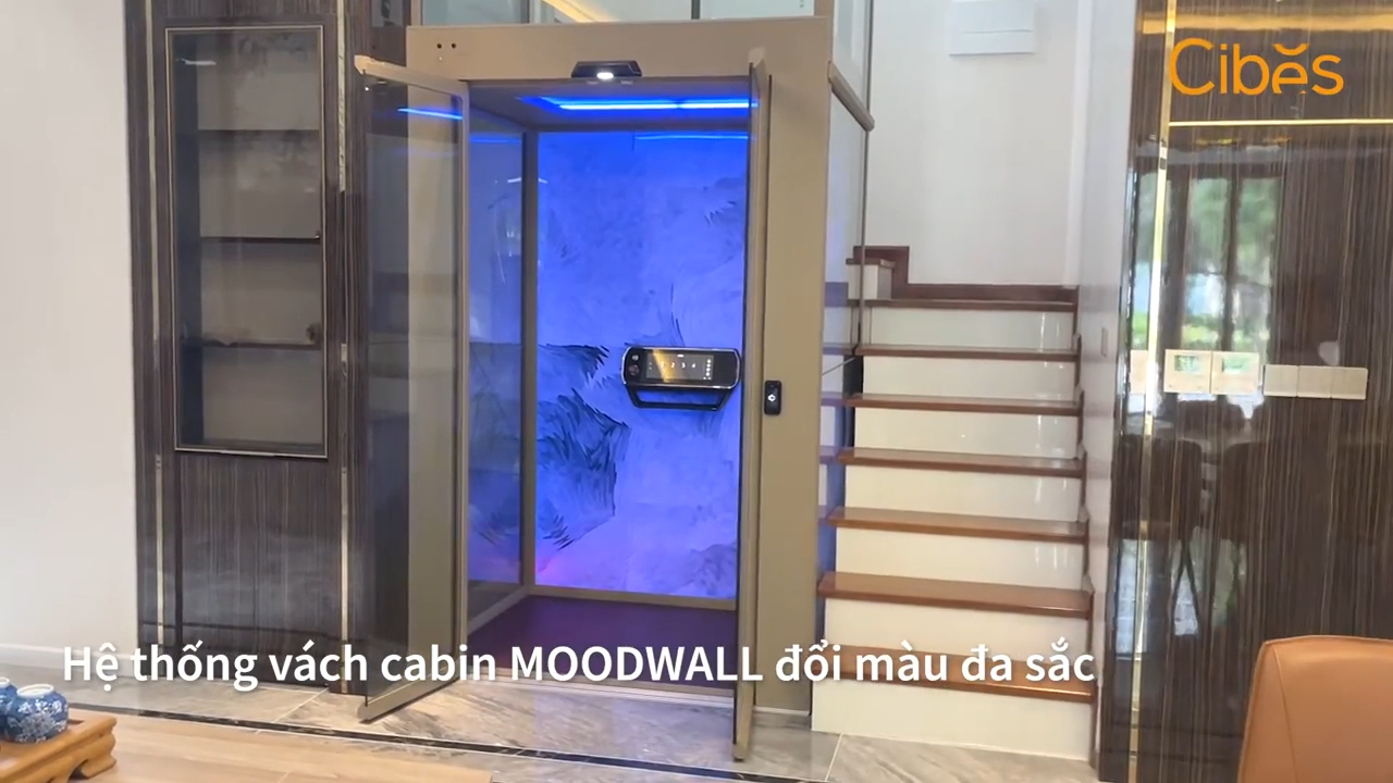 Đối với dòng thang này thì hệ thống đèn đa sắc chính là điểm nhấn của không gian. Khi có khách đến nhà, chiếc thang máy này chắc chắn sẽ tạo ấn tượng rất mạnh. Tuy nhiên nếu các bạn thích phong cách hài hòa với nội thất hơn thì Cybeth cũng có nhiều mẫu thang khác để lựa chọn.