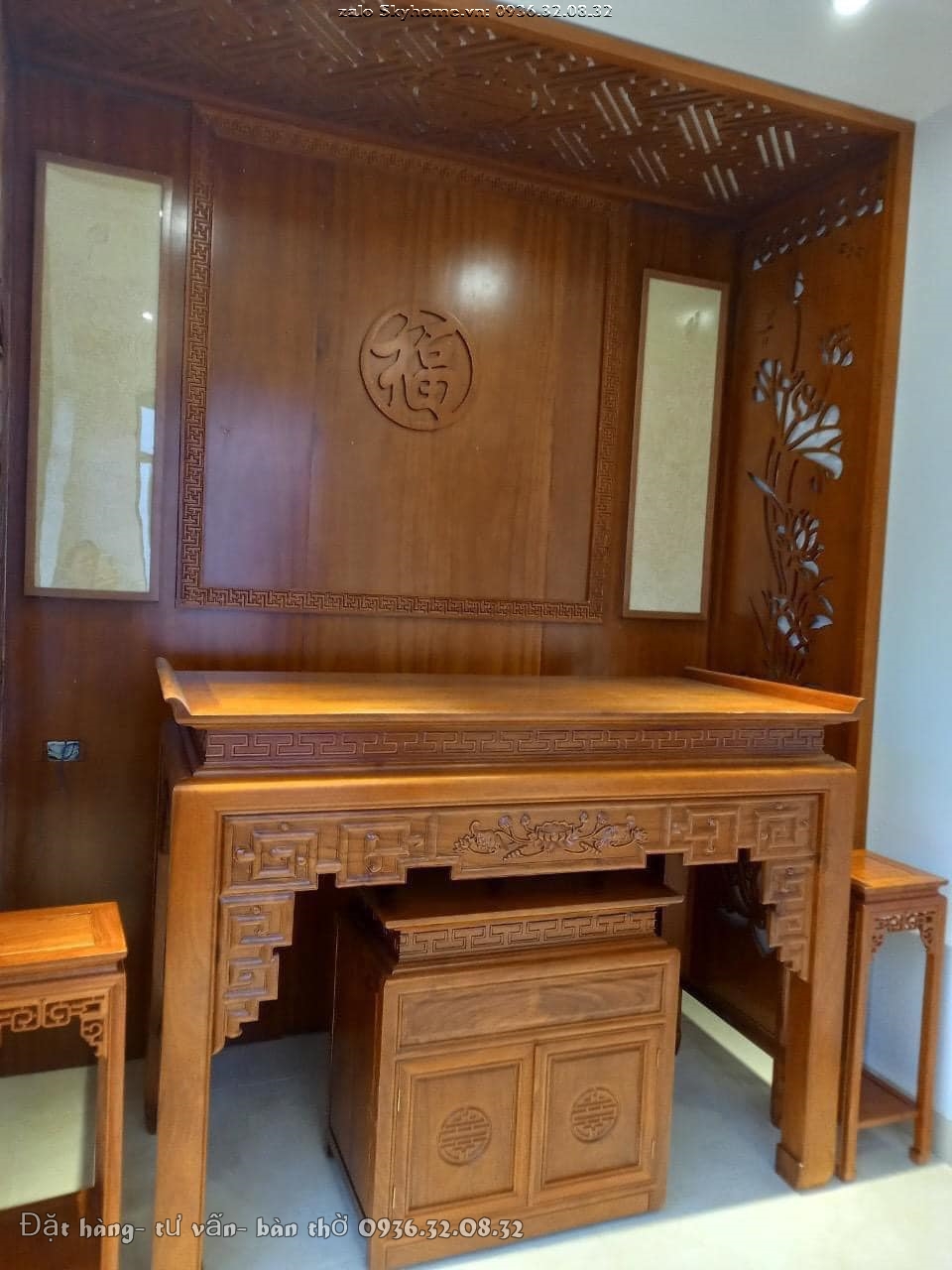 Phù hợp với không gian: Bàn thờ có kích thước cân đối, vừa vặn với không gian, tạo sự hài hòa trong tổng thể phòng thờ.