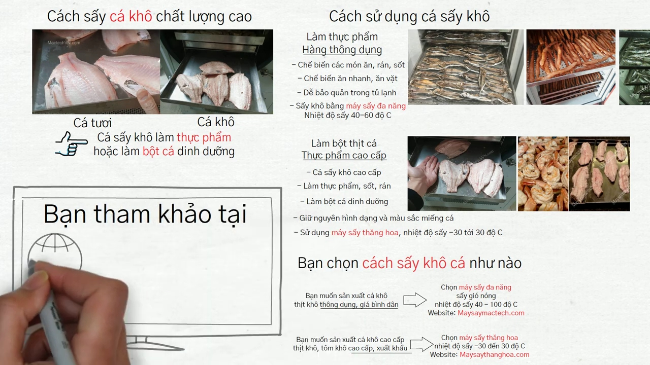 Trên đây đã chia sẻ cách sấy cá khô giữ nguyên hình dạng và màu sắc, không bị co ngót, nếu anh chị cần tìm hiểu thêm về máy sấy cá khô hoặc các thiết bị sấy thực phẩm khác thì có thể liên hệ để được tư vấn chi tiết và lựa chọn thiết bị phù hợp với nhu cầu sử dụng.
