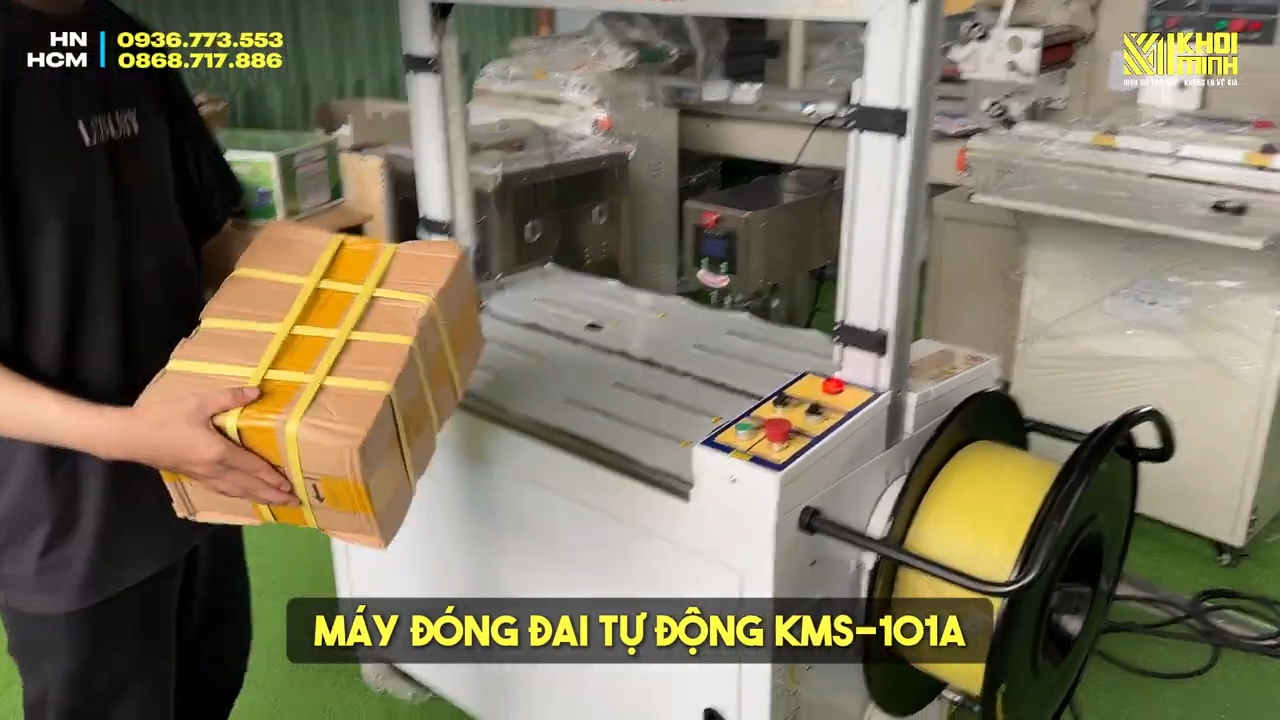 Hiện nay các dòng máy đóng đai này đang được phân phối bởi Khuê Minh với chính sách bảo hành 12 tháng, hỗ trợ kỹ thuật trọn đời và dịch vụ tư vấn tận nơi. Khách hàng có thể đến trực tiếp kho tại Hà Nội hoặc Thành phố Hồ Chí Minh để xem và chạy thử máy trước khi quyết định đầu tư.