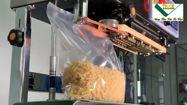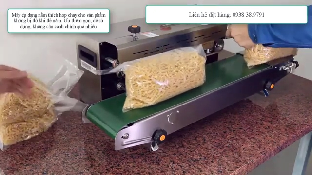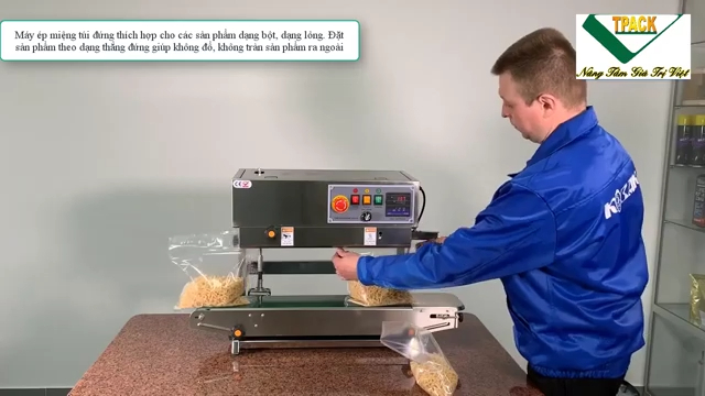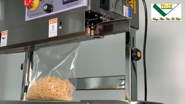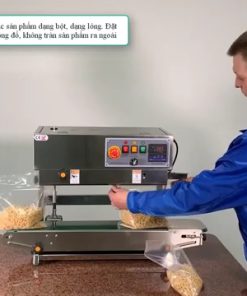 Trong khi đó, máy hàn miệng túi liên tục dạng nằm ngang lại phù hợp với các loại túi đựng sản phẩm khô. Khi sử dụng máy dạng này, túi sẽ được đặt nằm ngang trên băng tải và di chuyển qua bộ phận hàn để tạo đường hàn kín. Loại máy này thường được dùng để đóng gói các loại thực phẩm khô, bánh kẹo, hạt, hoặc các sản phẩm không dễ bị đổ trong quá trình hàn. Ưu điểm của máy dạng nằm là dễ vận hành, phù hợp với nhiều loại túi phổ biến và thường có chi phí đầu tư thấp hơn.