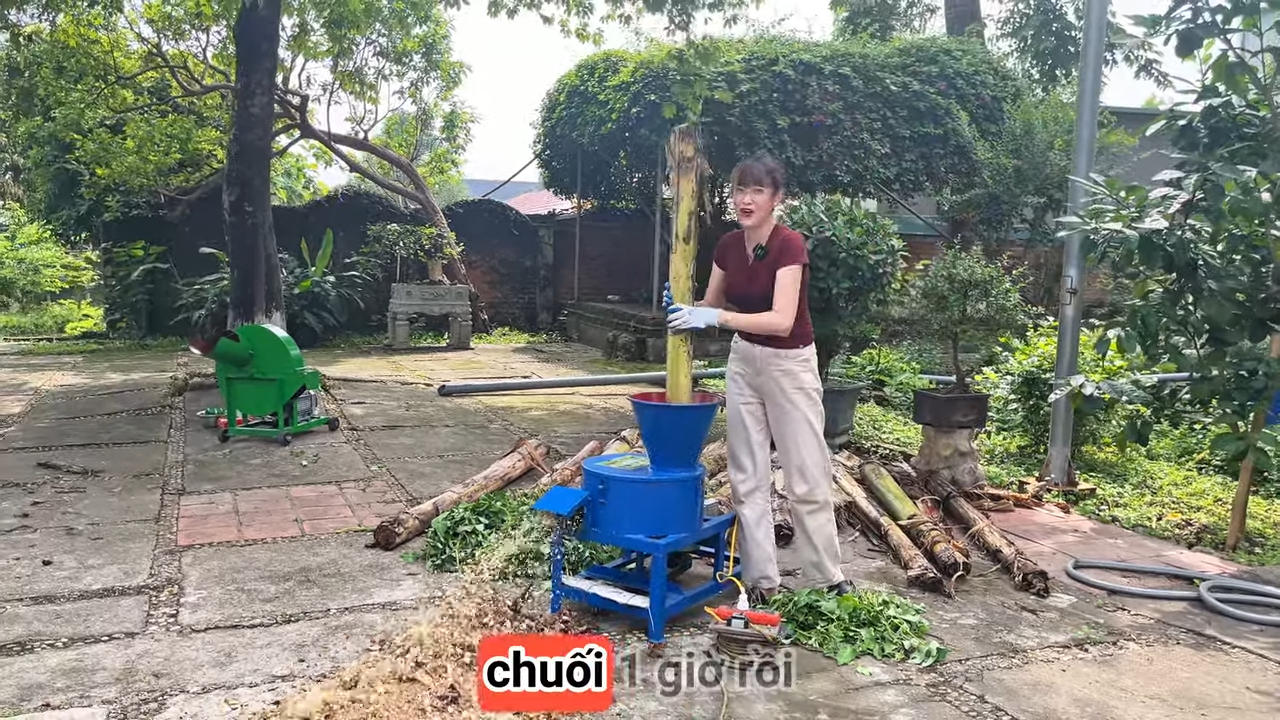 Đặc biệt đối với những bà con đang nuôi lợn, gà, dê, trâu, bò hoặc nuôi cá thì việc đầu tư một chiếc máy băm chuối sẽ giúp giảm đáng kể công lao động, tiết kiệm chi phí thuê nhân công và nâng cao hiệu quả chăn nuôi. Bà con có thể thấy thân cây chuối dù nhiều xơ nhưng máy vẫn băm nhỏ rất nhanh và cho ra thành phẩm mịn.