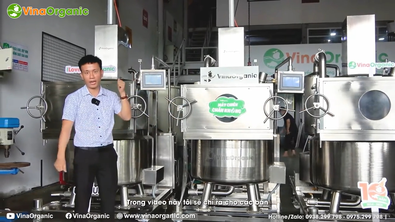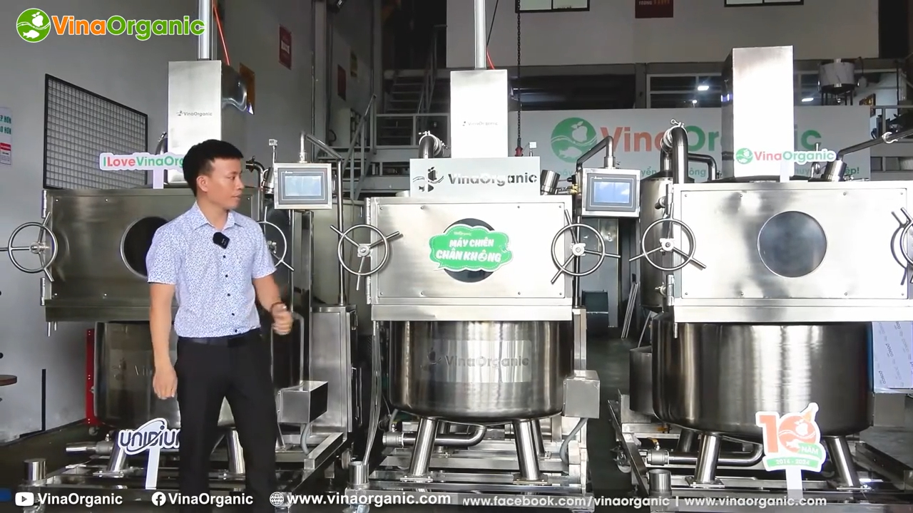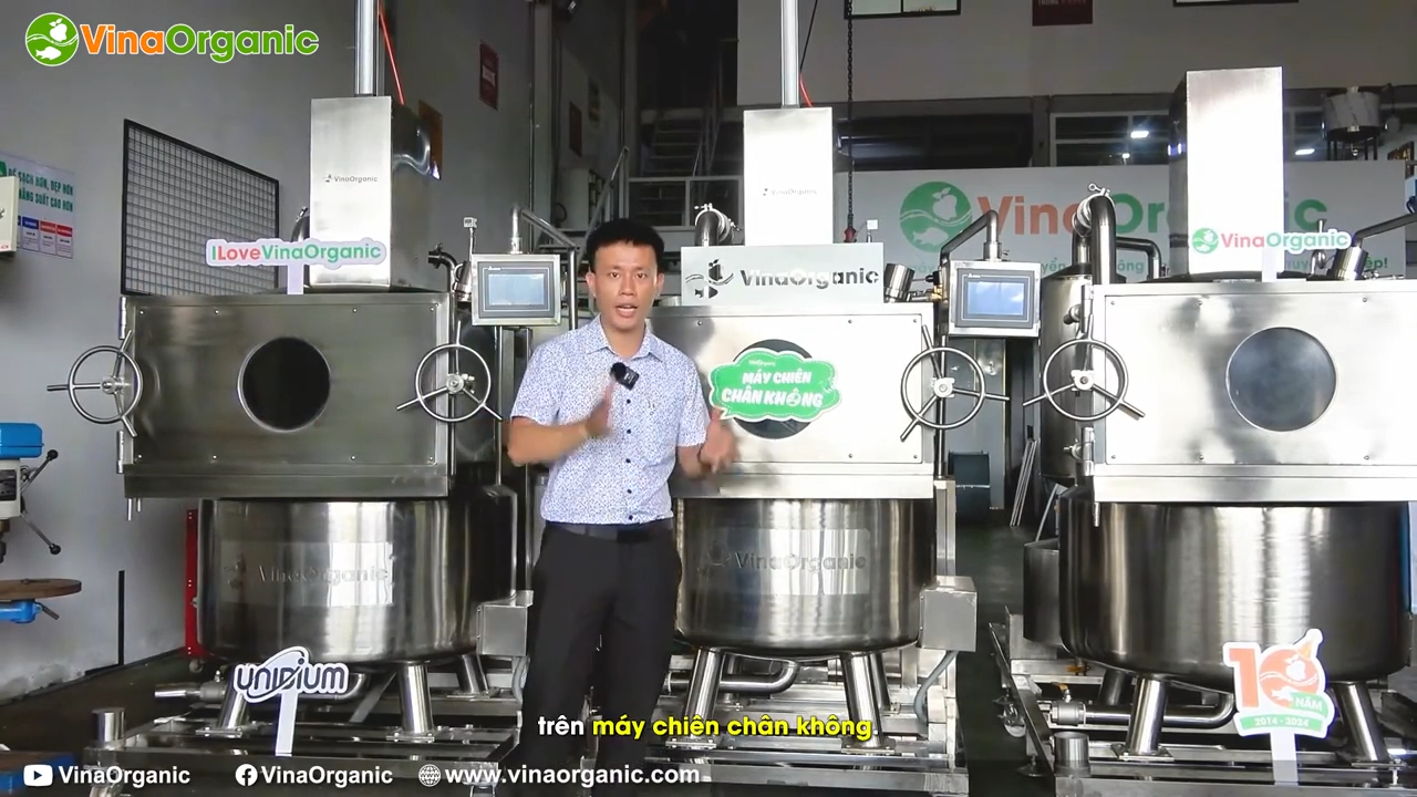 Trong quá trình chiên chân không, hệ thống máy sẽ kiểm soát nhiều yếu tố như nhiệt độ dầu, áp suất chân không, thời gian chiên, tốc độ gia nhiệt và hoạt động của các bơm chân không. Tất cả những yếu tố này phối hợp với nhau để tạo ra môi trường chiên đặc biệt, giúp sản phẩm giữ được màu sắc tự nhiên, độ giòn và hương vị đặc trưng của nguyên liệu.