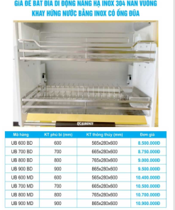 Trên đây là thông tin về giá và thông số kỹ thuật của các sản phẩm giá bát nâng hạ rộng 800mm – 900mm.