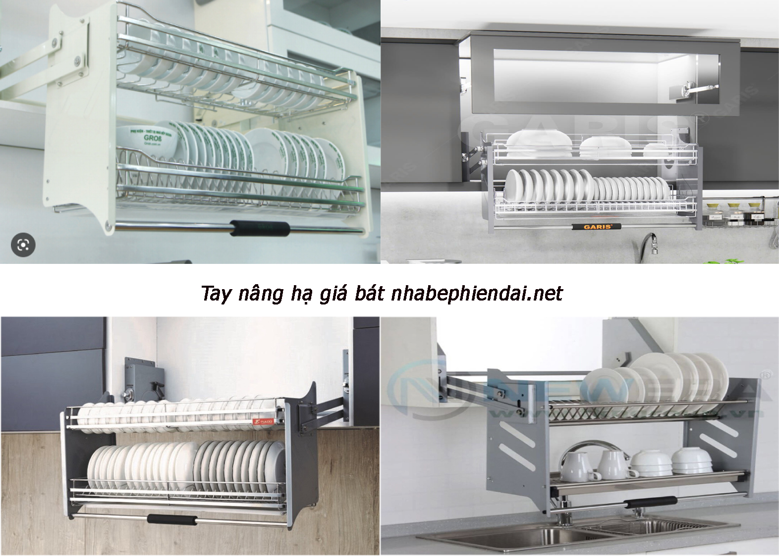 Tay nâng hạ giá bát là một phụ kiện nhà bếp với cấu tạo đặc biệt giúp việc lấy và cất bát trở nên đơn giản và dễ dàng hơn bao giờ hết. Phụ kiện thường được gắn trên cửa tủ nhà bếp và hoạt động nhờ hệ thống lò xo hoặc thuỷ lực. Khi bạn mở cửa tủ, tay nâng hạ giá bát sẽ nâng giá bát và cho phép bạn dễ dàng lấy và cất bát thuận tiện hơn. Ngược lại, khi bạn đóng cửa tủ, tay nâng hạ giá bát sẽ hạ giá bát xuống giúp bạn dễ dàng cho bát vào một cách dễ dàng.