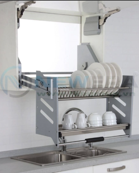 - Tiện ích đi kèm: Giá bát nâng hạ có thêm các tiện ích như khay hứng nước, khay đựng thìa, dĩa,… có giá cao hơn giá bát nâng hạ không có tiện ích.