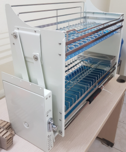 - Kệ chén nâng hạ Taki có ba bộ phận chính: Giá bát, hộp điều khiển, và bộ phận liên kết.