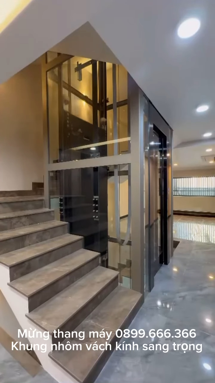 Một ưu điểm nữa là khi sử dụng thang máy vách kính, không gian trong nhà sẽ trở nên thông thoáng hơn rất nhiều. Dù thang đang ở tầng nào thì chúng ta vẫn có thể nhìn xuyên qua hệ kính, nhờ đó không gian ngôi nhà sẽ không bị bí hoặc bị che chắn như các dòng thang máy xây hố bê tông kín. Điều này đặc biệt phù hợp với các ngôi nhà hiện đại, nhà phố hoặc nhà có diện tích vừa phải nhưng vẫn muốn giữ cảm giác rộng rãi và thoáng đãng.
