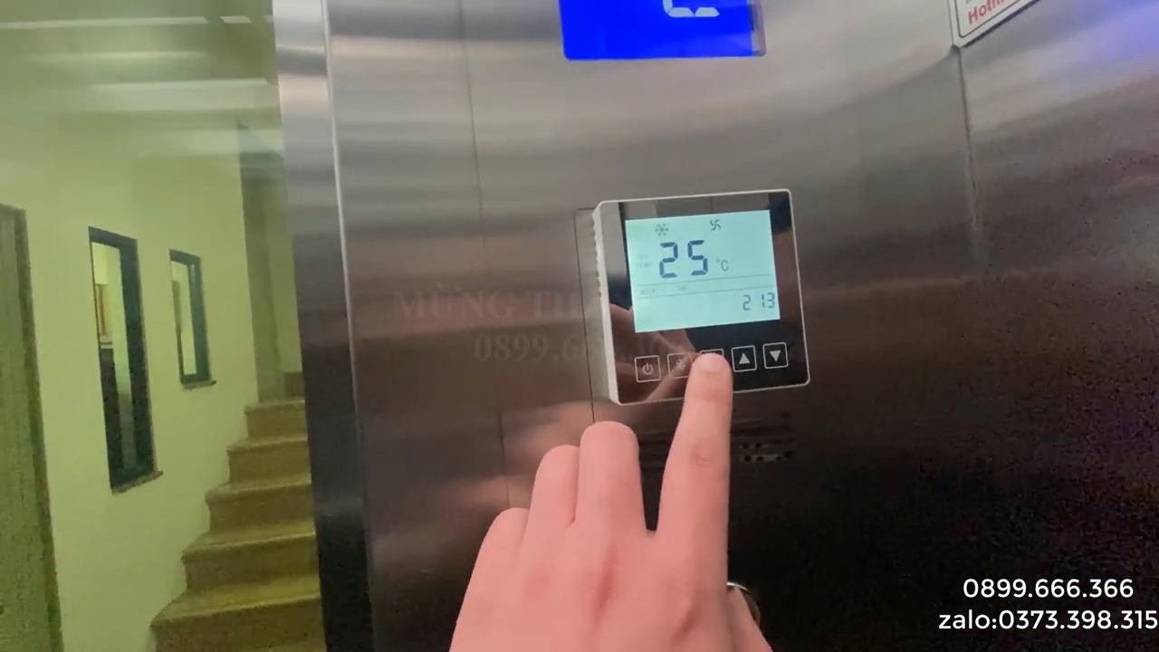Trong cabin còn được lắp đèn chiếu tia UV, thiết bị này giúp loại bỏ vi khuẩn trong cabin thang máy vào buổi tối khi văn phòng không sử dụng. Ngoài ra cabin còn được trang bị màn hình LCD hiển thị tầng, bảng điều khiển trung tâm và hệ thống điều hòa. Điều hòa công suất khoảng 2HP giúp không gian bên trong thang luôn mát mẻ, đặc biệt trong môi trường văn phòng khi mọi người thường mặc đồ công sở thì việc có điều hòa trong thang máy sẽ tạo cảm giác thoải mái hơn khi di chuyển.